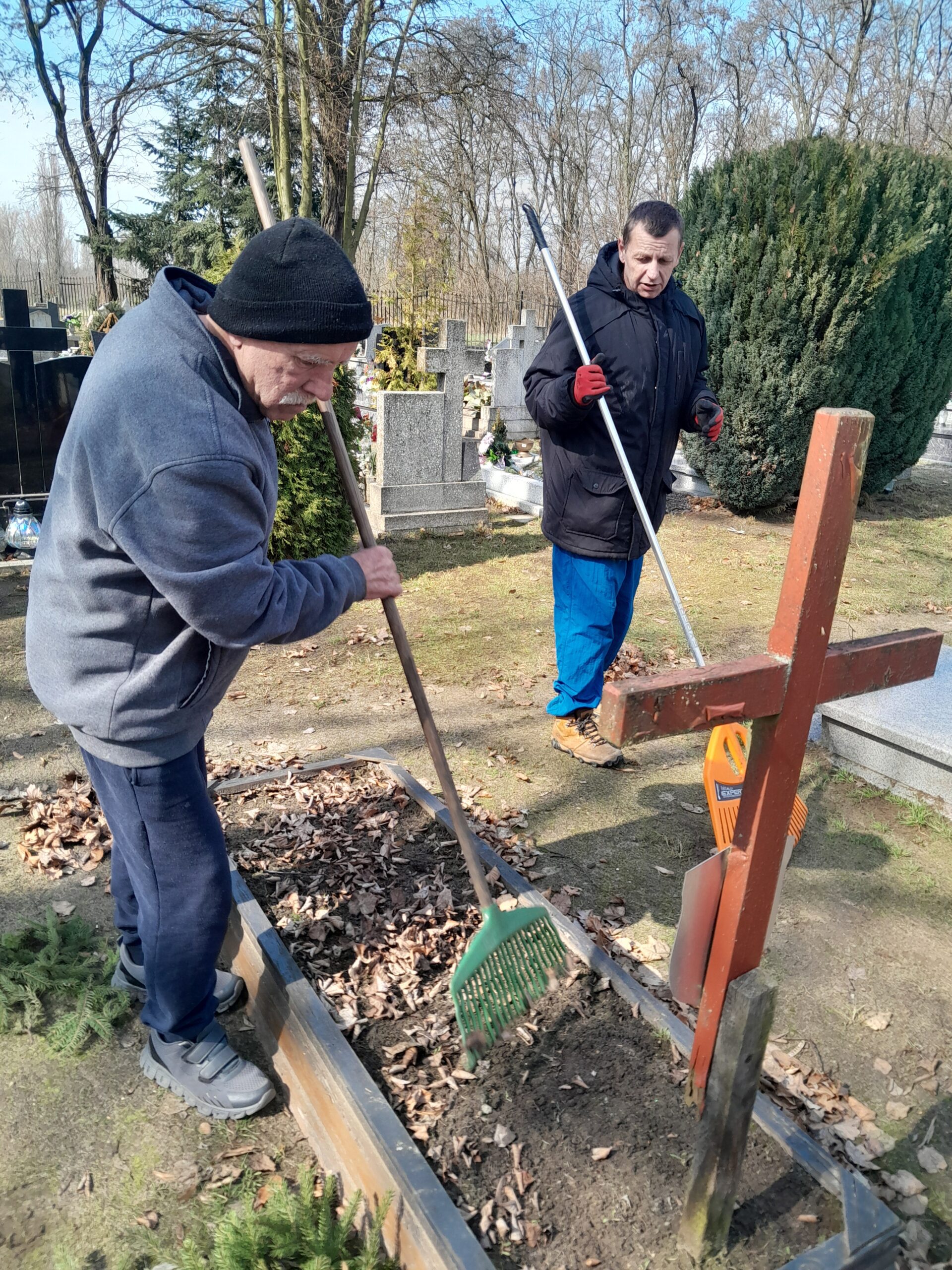 W trakcie prac wolontariusze zajmują się m.in. grabieniem liści, usuwaniem zanieczyszczeń, porządkowaniem otoczenia grobów oraz dbaniem o ich estetykę. To nie tylko wyraz szacunku i pamięci o osobach, które były częścią społeczności schroniska, ale także ważny element kształtowania odpowiedzialności i zaangażowania.