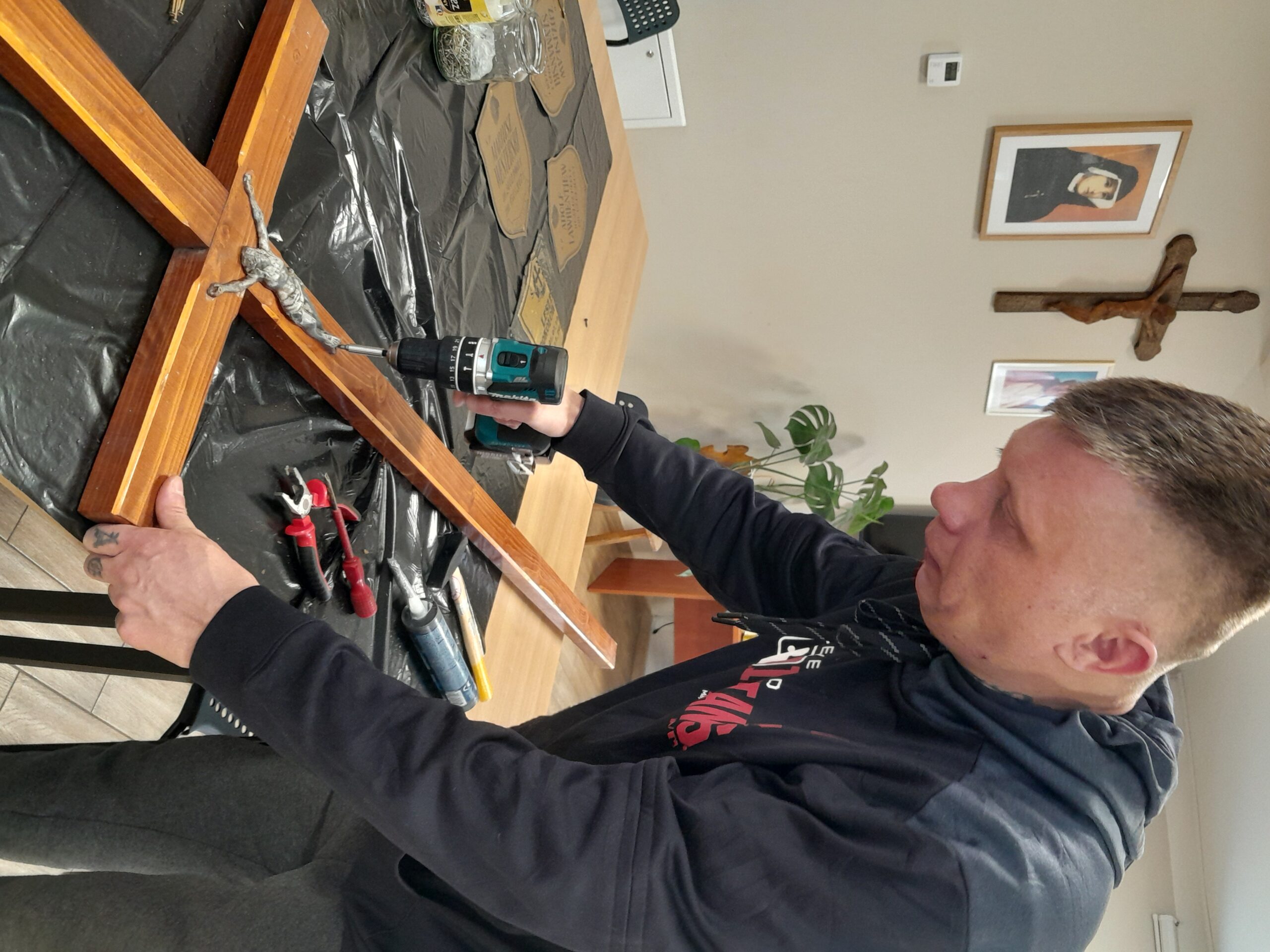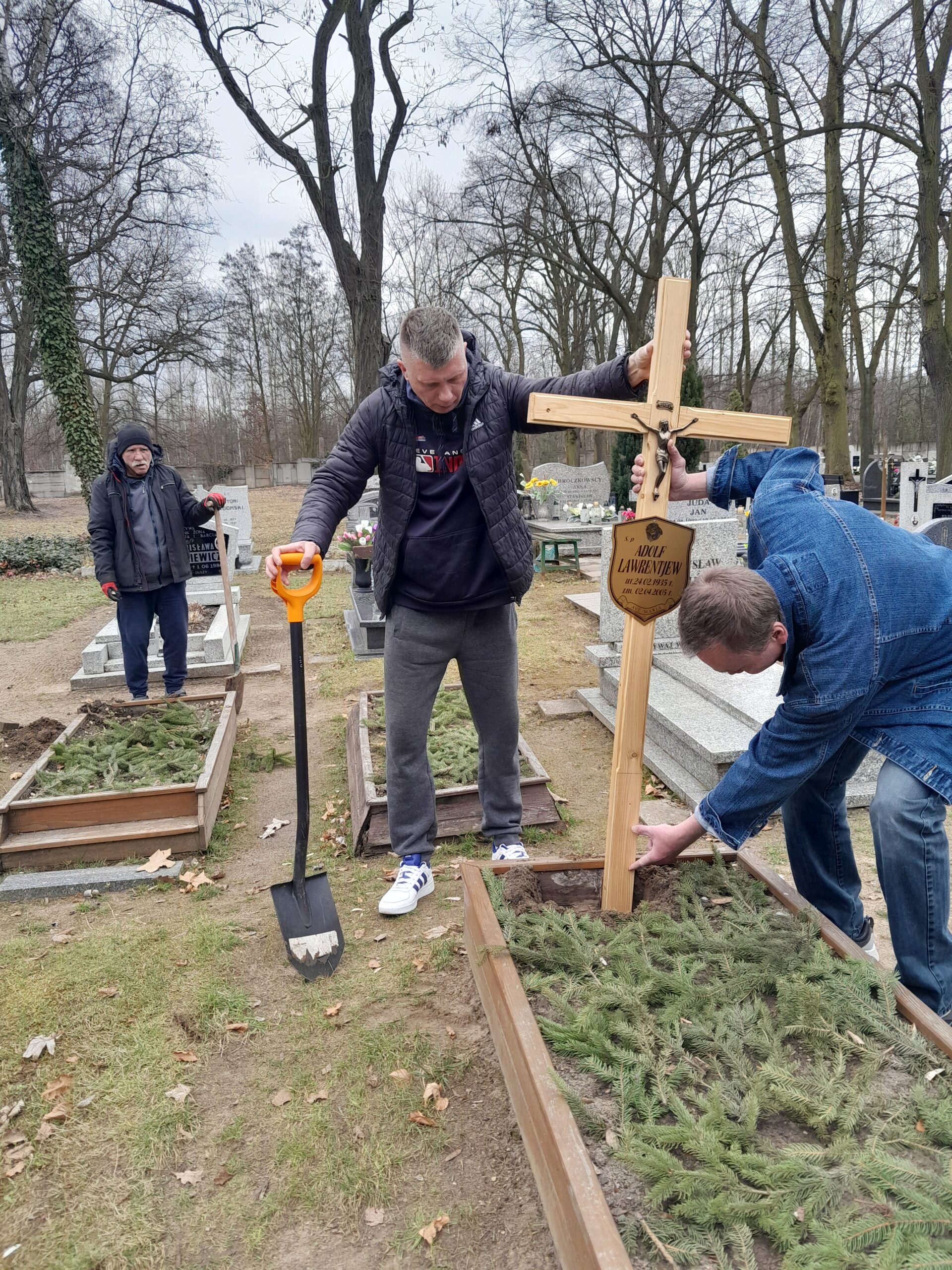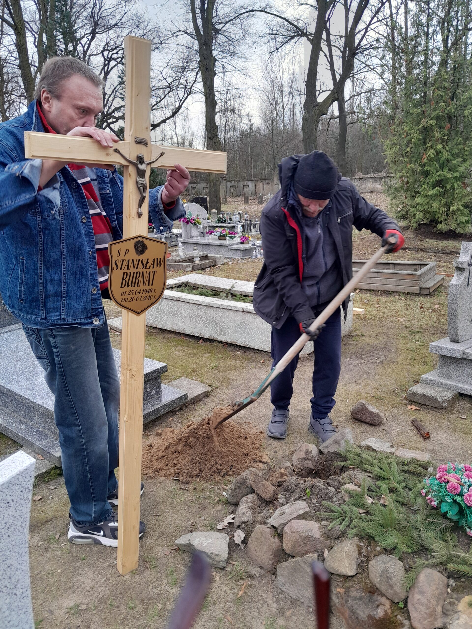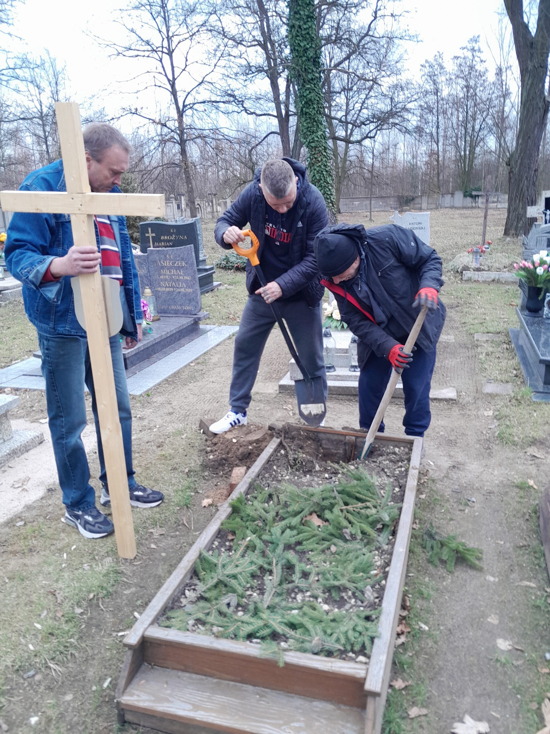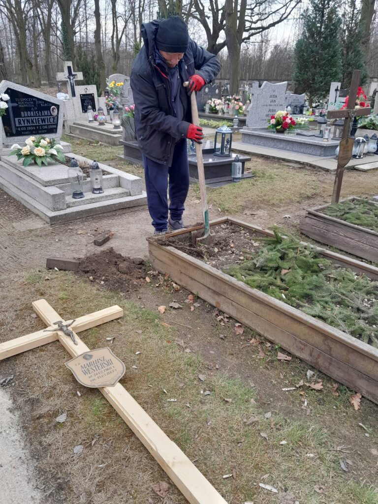 Drewniane krzyże zostały wykonane w warsztacie stolarskim przez wolontariuszy ze Schroniska w Zielonej Górze, natomiast mieszkańcy Schroniska Caritas w Żukowicach zajęli się ich montażem oraz uporządkowaniem terenu wokół grobów. Działania te stanowią kontynuację cyklicznej opieki nad miejscami pamięci.