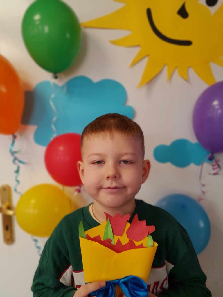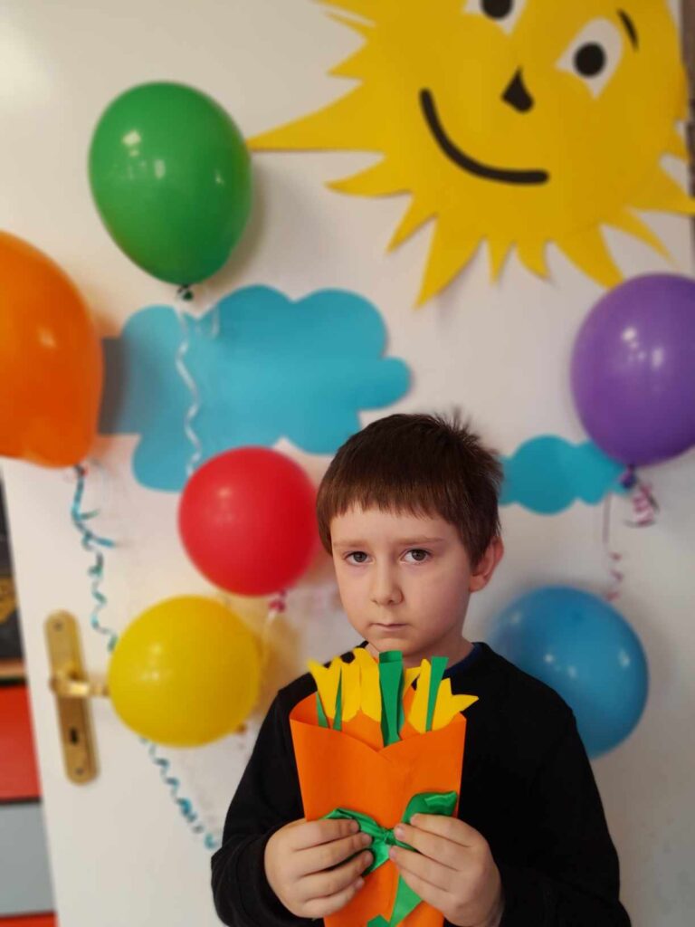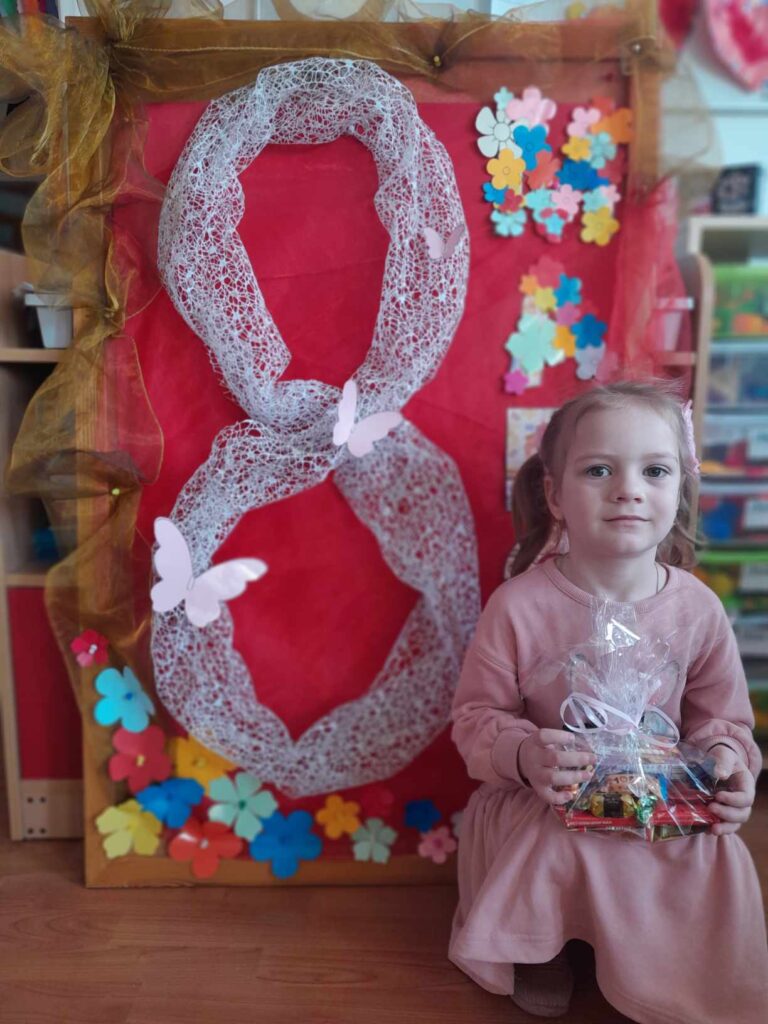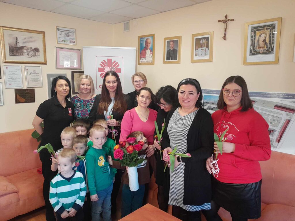 Chłopcy wręczyli dziewczynkom własnoręcznie wykonane prezenty oraz słodkości. Złożyli również życzenia, wszystkim paniom, które pracują w Caritas 🙂