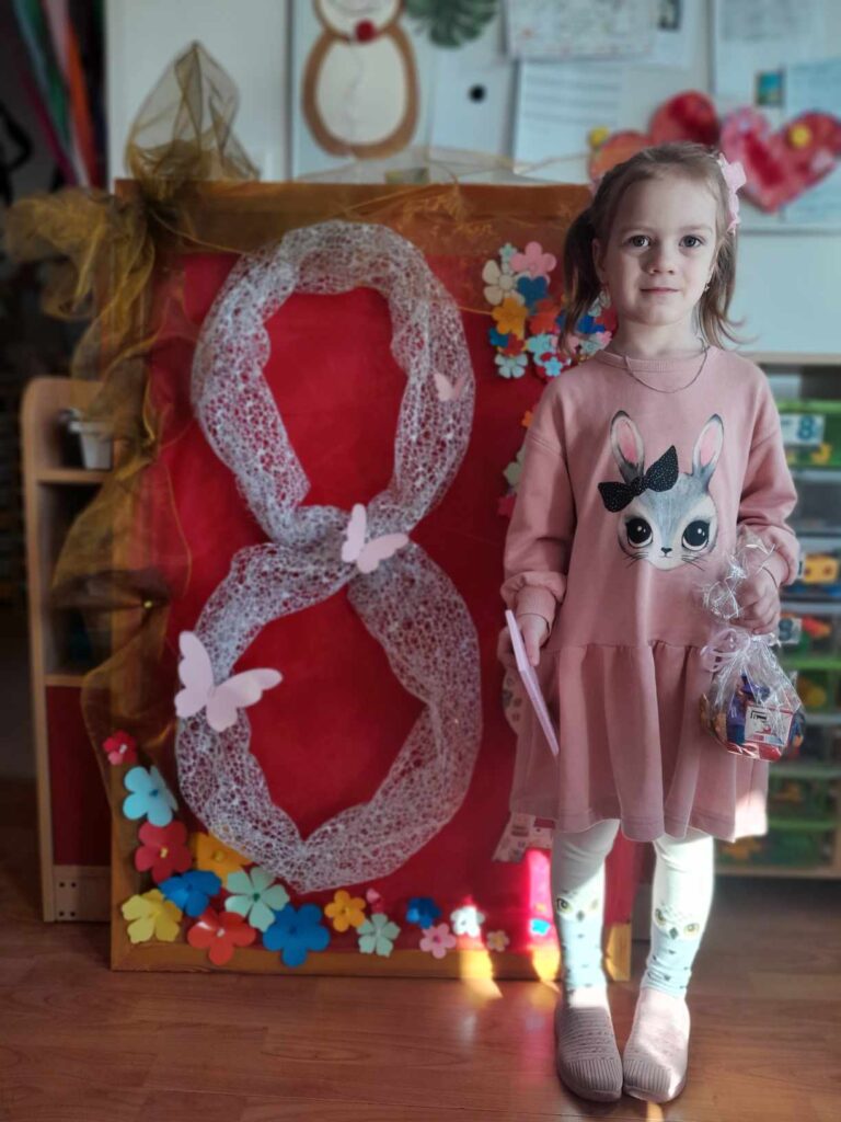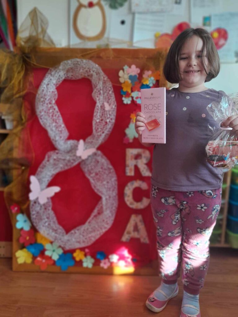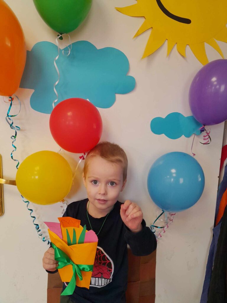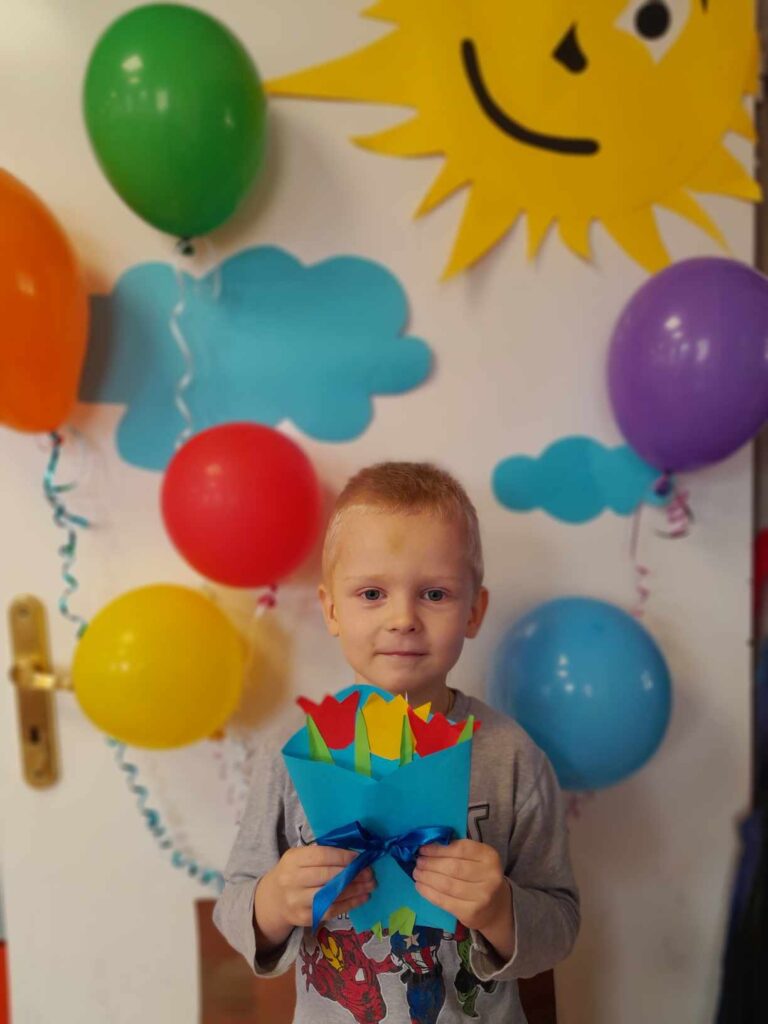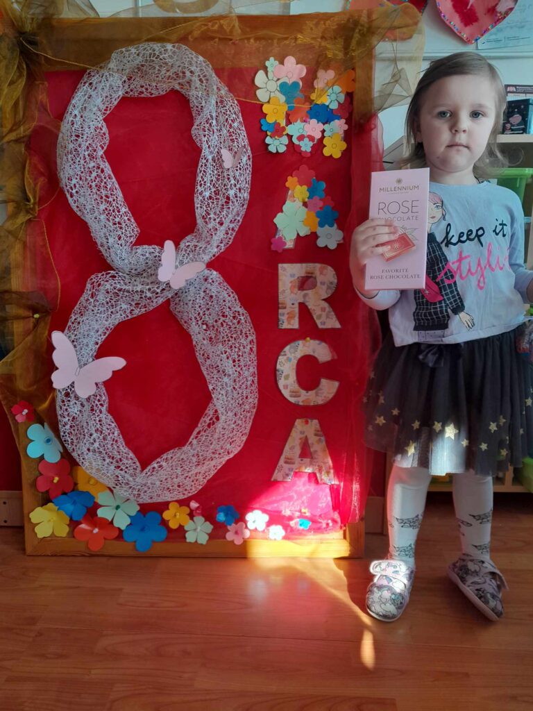 Chłopcy wręczyli dziewczynkom własnoręcznie wykonane prezenty oraz słodkości. Złożyli również życzenia, wszystkim paniom, które pracują w Caritas 🙂