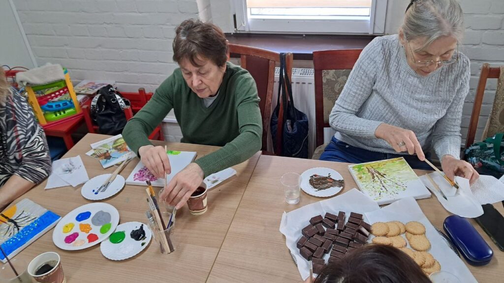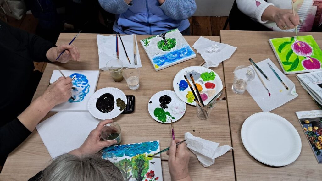 28 stycznia 2026 roku, CPMiU przygotowało warsztaty malarskie w tematyce ,,Drzewo celów” dla naszych seniorów. Za pomocą specjalnych farb akrylowych, seniorki malowały na płótnach drzewa oraz obrazy natury w celu relaksacji i kontemplacji wartości natury w naszym życiu.