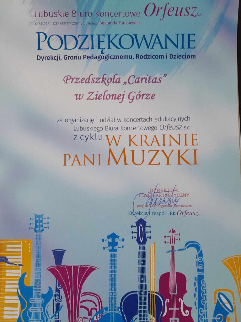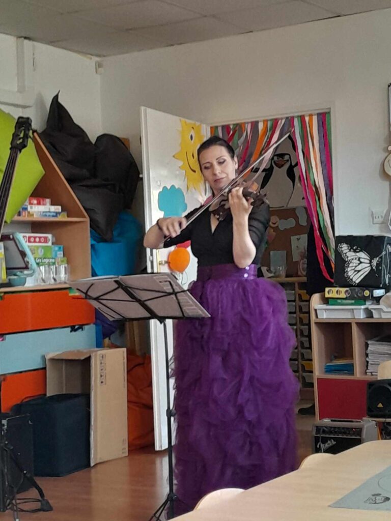 Koncert Muzyczny „Lubuskiego Biura Koncertowego – Orfeusz” zakończył w naszym Świetlicowym Oddziale Przedszkolnym cykl koncertów edukacyjnych pt. „W krainie Pani Muzyki” bardzo pięknym koncertem smyczkowym.
