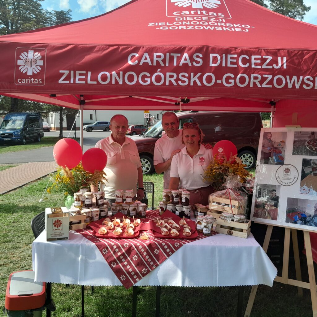 Podczas głogowskiego pikniku „W cieniu Kolegiaty”, Caritas Diecezji Zielonogórsko-Gorzowskiej zaprezentował stoisko z przetworami wykonanymi przez mieszkańców Schroniska w Żukowicach. To właśnie oni, angażując się w działania wspólnoty, przetwarzają owoce i warzywa, tworząc weki. Praca ta nie tylko wspiera ich aktywizację społeczną, ale również realizuje zasady ekologii integralnej i gospodarki o obiegu zamkniętym. Mieszkańcy uczą się w ten sposób wykorzystywać lokalne produkty, nie marnując żywności i dbając o środowisko.