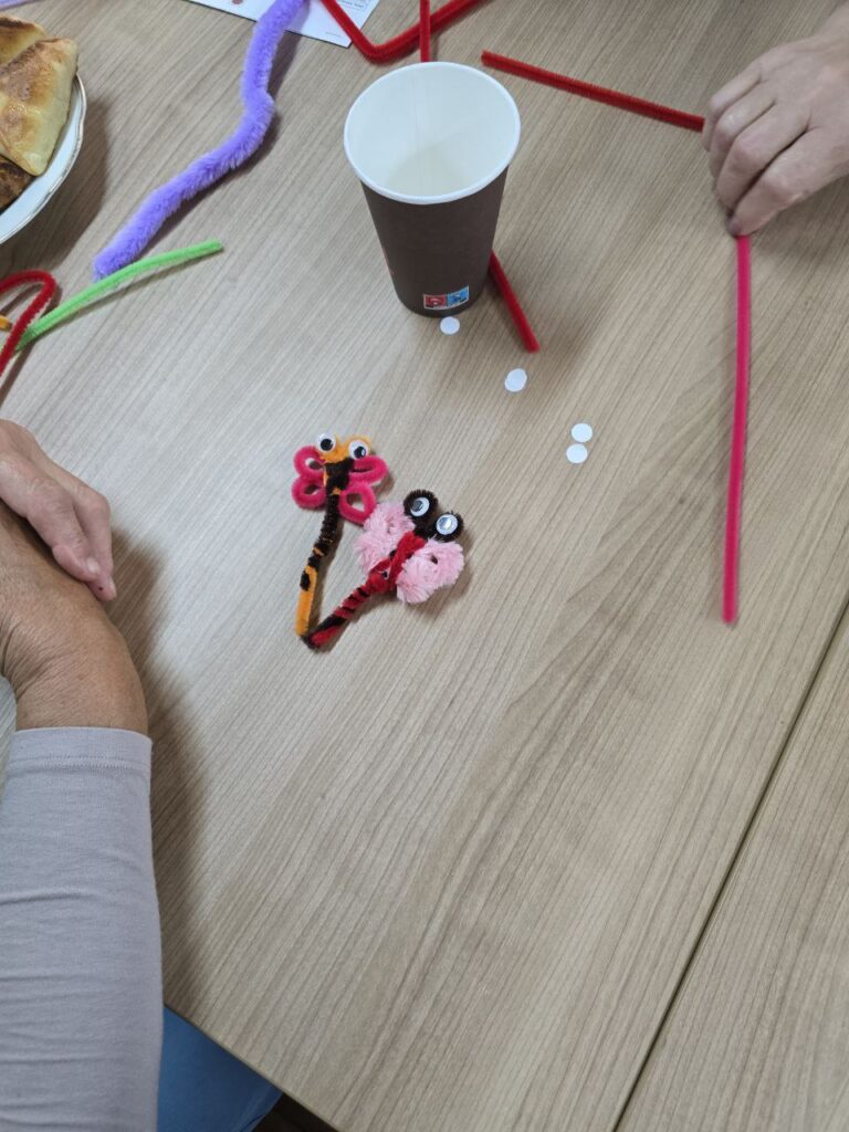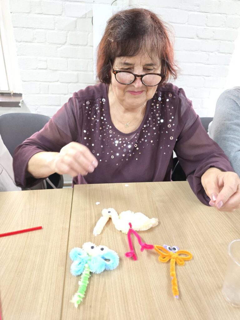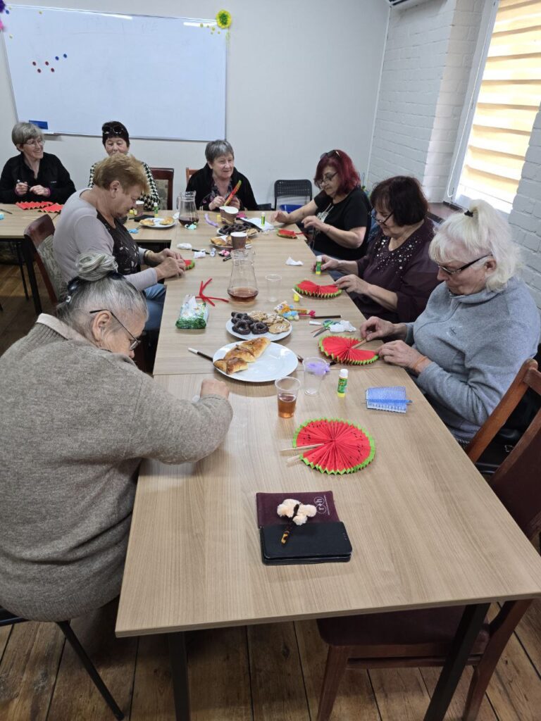 Podczas jednego z letnich spotkań odbyły się warsztaty rękodzielnicze, w czasie których uczestniczki wykonały barwne ważki z drucików kreatywnych oraz papierowe arbuzy na drewnianych patyczkach. Gotowe prace nie tylko cieszyły oko, ale również pełniły praktyczną funkcję – arbuzowe wachlarze okazały się doskonałe na gorące, letnie dni.
