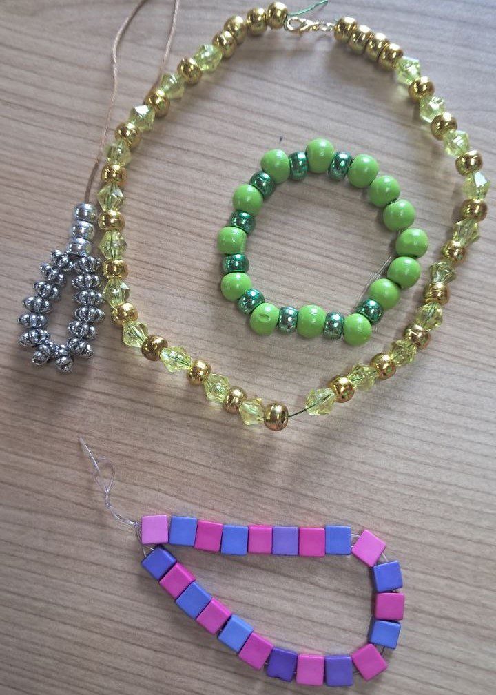 Proces tworzenia biżuterii okazał się interesujący i ekscytujący. Dzięki temu seniorzy mogli od razu założyć i nosić samodzielnie wykonaną biżuterię. Spędziliśmy dzień w radosnym i kolorowym nastroju.