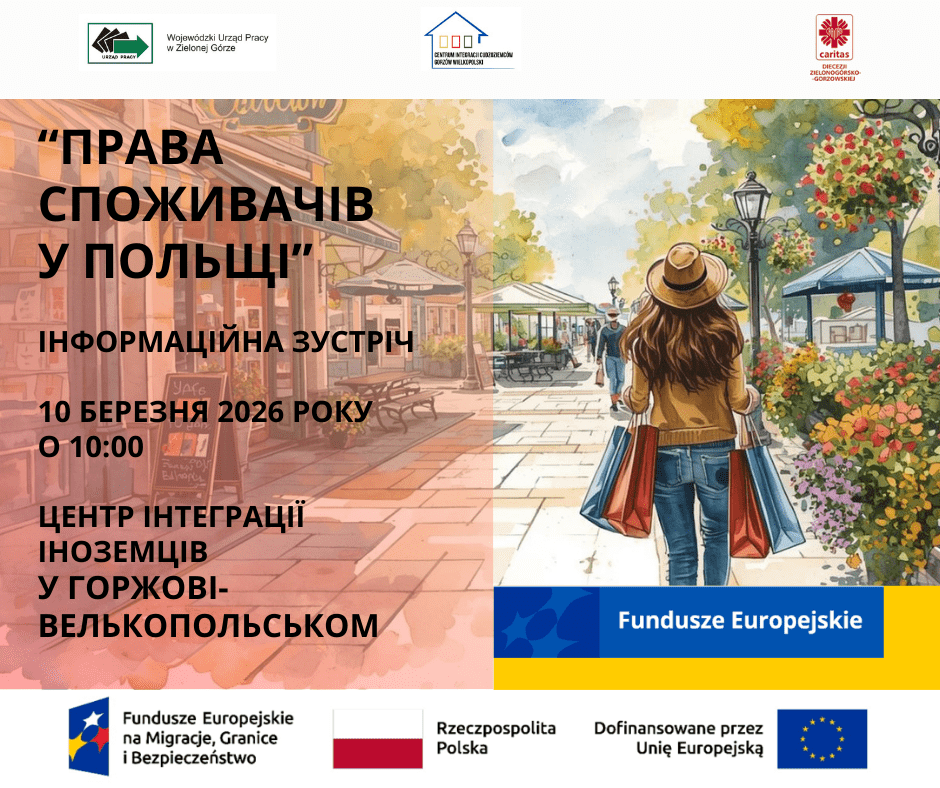 👮 Зустріч проведуть Речник з прав споживачів та представник Поліції в Гожуві-Велькопольському, які розкажуть, зокрема, про те, які права мають споживачі в Польщі, як ефективно подавати скарги (рекламації), як відмовитися від договору та де шукати безоплатну допомогу у спорах.