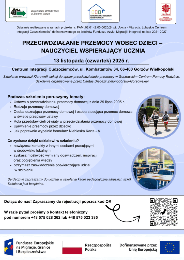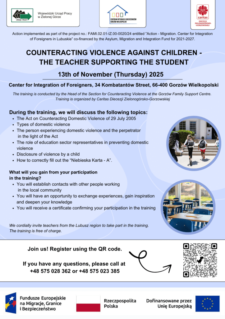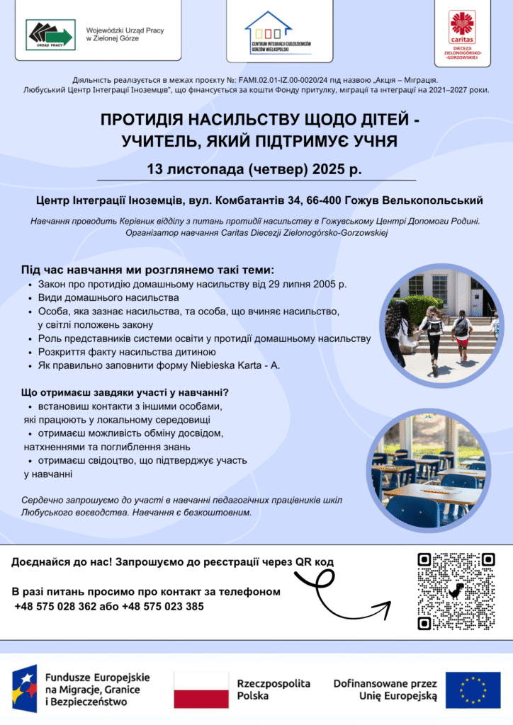 Działanie realizowane w ramach projektu nr: FAMI.02.01-IZ.00-0020/24 pt. „Akcja – Migracja. Lubuskie Centrum Integracji Cudzoziemców” dofinansowanego ze środków Funduszu Azylu, Migracji i Integracji na lata 2021-2027.