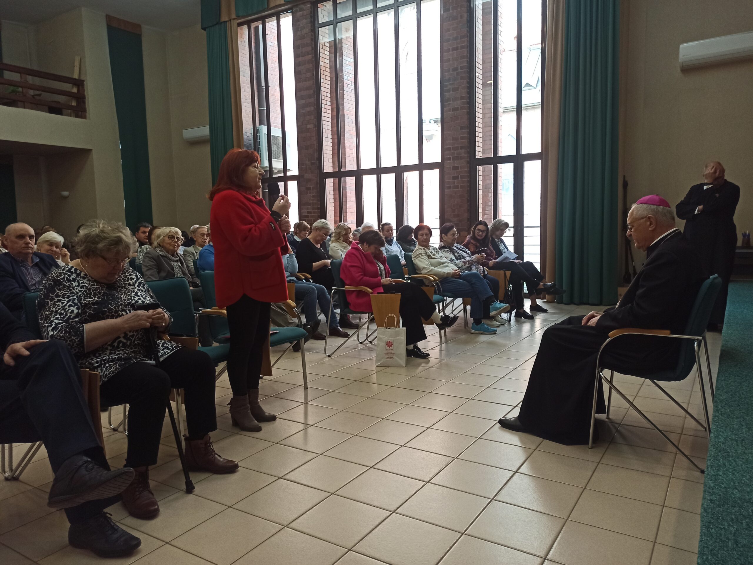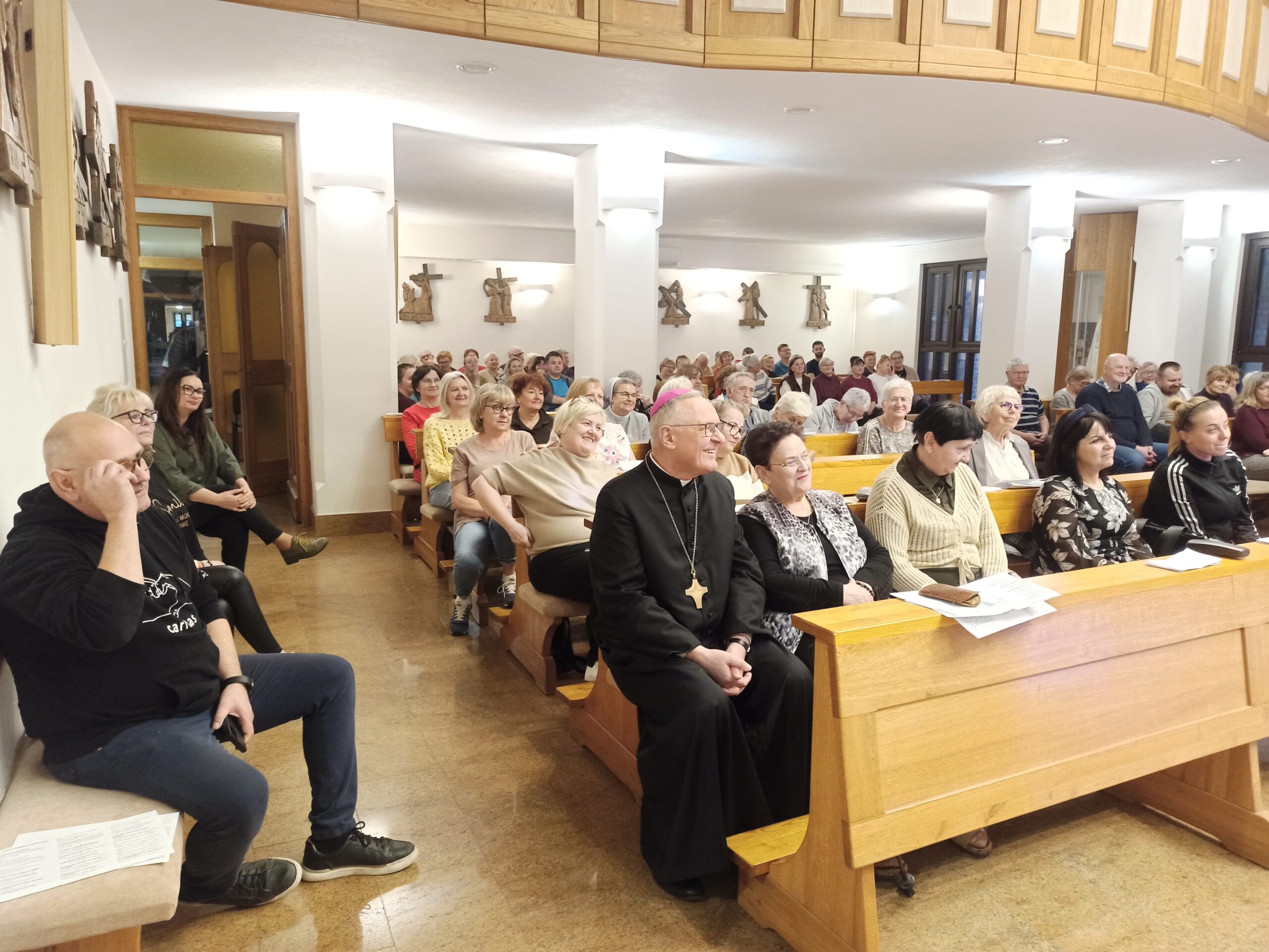 Pierwszego dnia rekolekcji z uczestnikami spotkał się także biskup diecezjalny Tadeusz Lityński. W swoim słowie podkreślił niezwykle ważną rolę parafialnych zespołów Caritas, które poprzez konkretną pomoc i wrażliwość na potrzeby innych stają się widzialnym znakiem miłości i miłosierdzia Kościoła. Wyraził również radość z wieloletniego zaangażowania wolontariuszy w udział w rekolekcjach, podkreślając potrzebę słuchania słowa Bożego, modlitwy oraz wzajemnego umacniania się we wspólnocie.