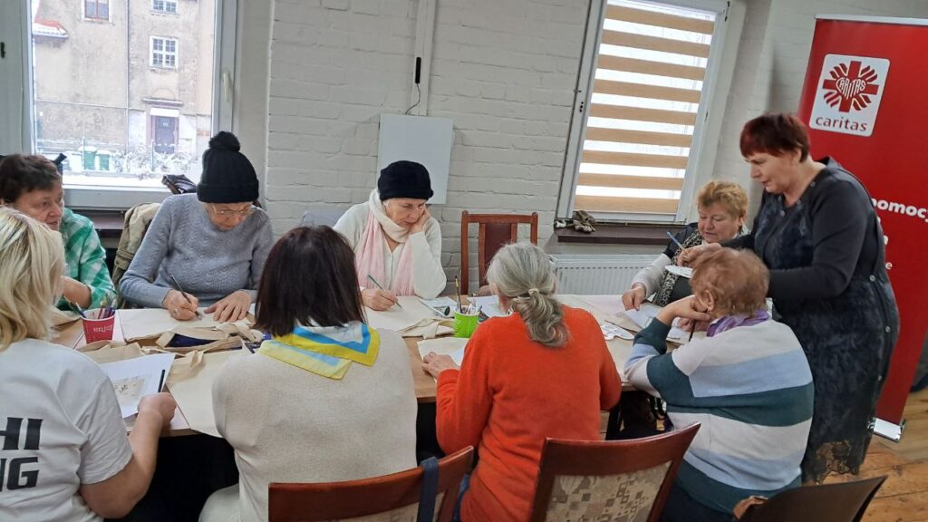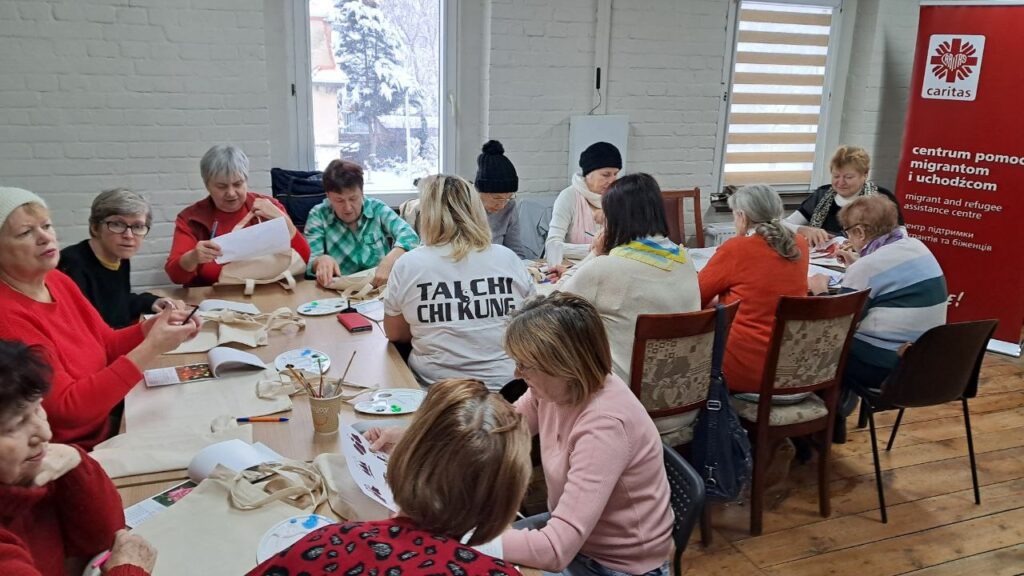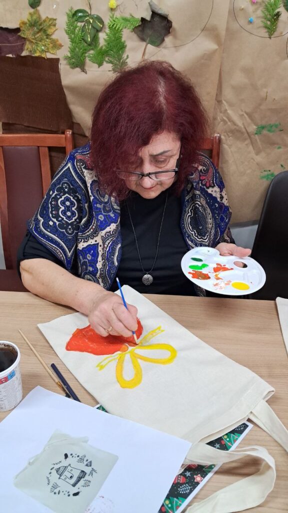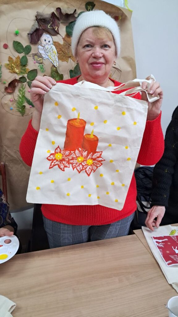 W dniu dzisiejszym uczestniczki Klubu Aktywnych Seniorów wzięły udział w twórczych warsztatach artystycznych, podczas których ozdabiały ekologiczne, bawełniane torby. Inspiracją dla wielu z nich okazały się nadchodzące święta oraz zimowa aura za oknem, co zaowocowało wyjątkowo barwnymi i pełnymi ciepła projektami.