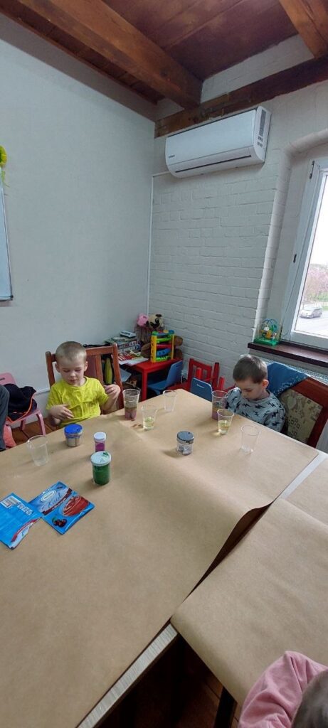 Dzieci bardzo radośnie i z dużym zaangażowaniem podeszły do zadania ,,małego chemika” i dzielnie obserwowały swój eksperyment.