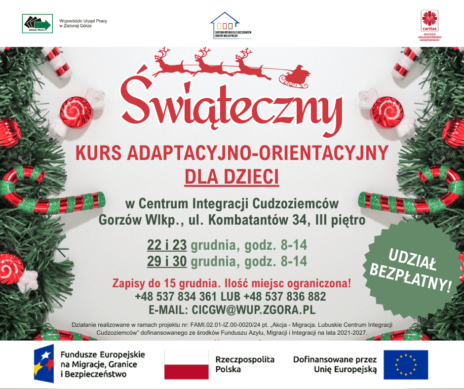 Działanie realizowane w ramach projektu nr: FAMI.02.01-IZ.00-0020/24 pt. „Akcja – Migracja. Lubuskie Centrum Integracji Cudzoziemców” dofinansowanego ze środków Funduszu Azylu, Migracji i Integracji na lata 2021-2027.