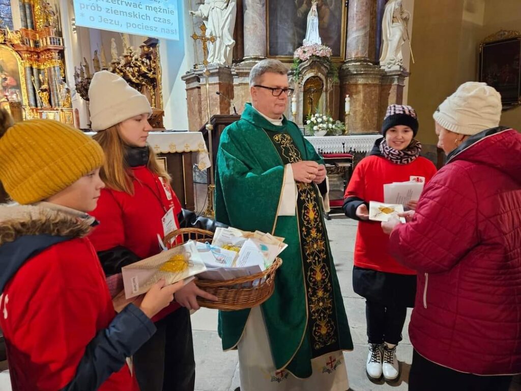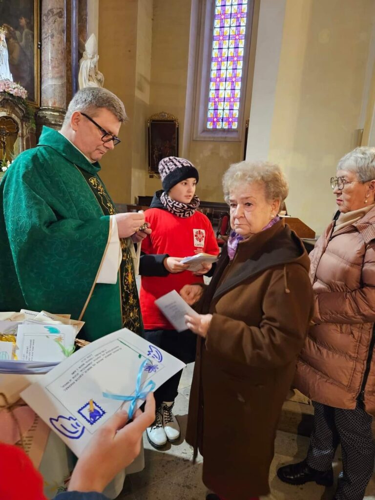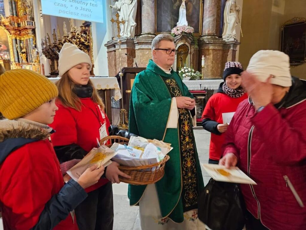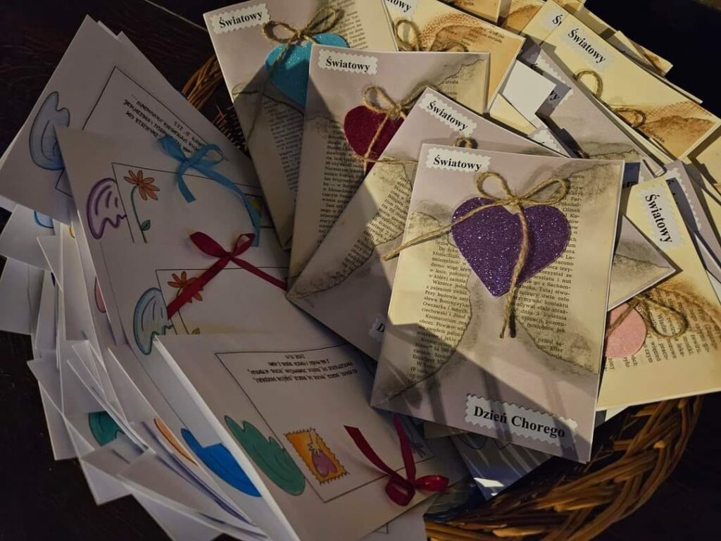 Wolontariusze Szkolnego Koła Caritas własnoręcznie przygotowali kartki z życzeniami dla chorych. Podczas Mszy świętej kartki zostały rozdane w parafii pw. Wniebowzięcia NMP w Żaganiu
