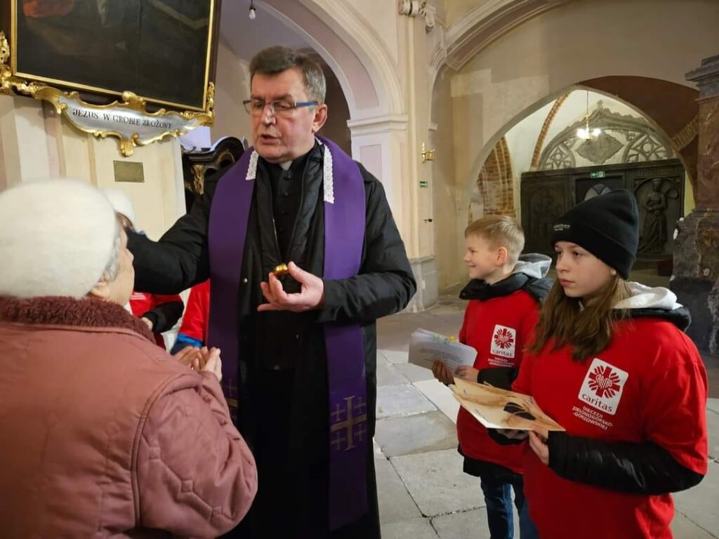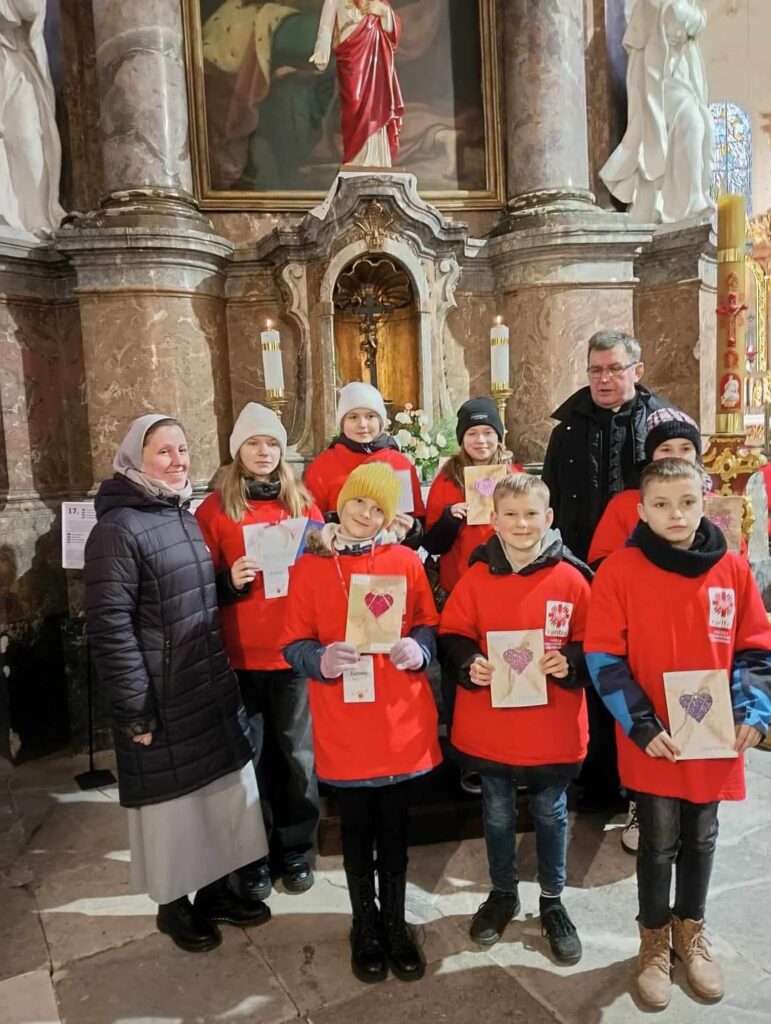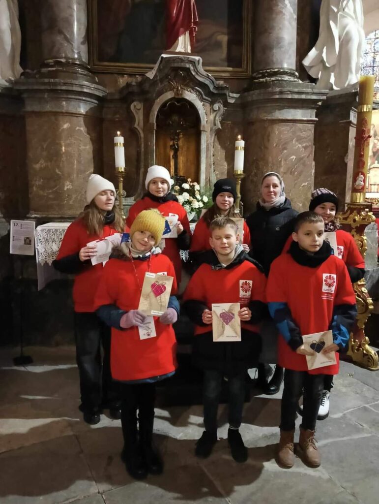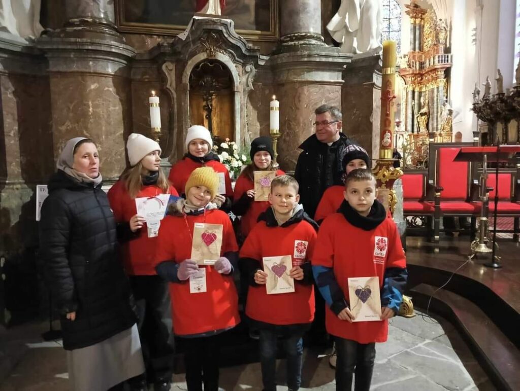 Wolontariusze Szkolnego Koła Caritas własnoręcznie przygotowali kartki z życzeniami dla chorych. Podczas Mszy świętej kartki zostały rozdane w parafii pw. Wniebowzięcia NMP w Żaganiu