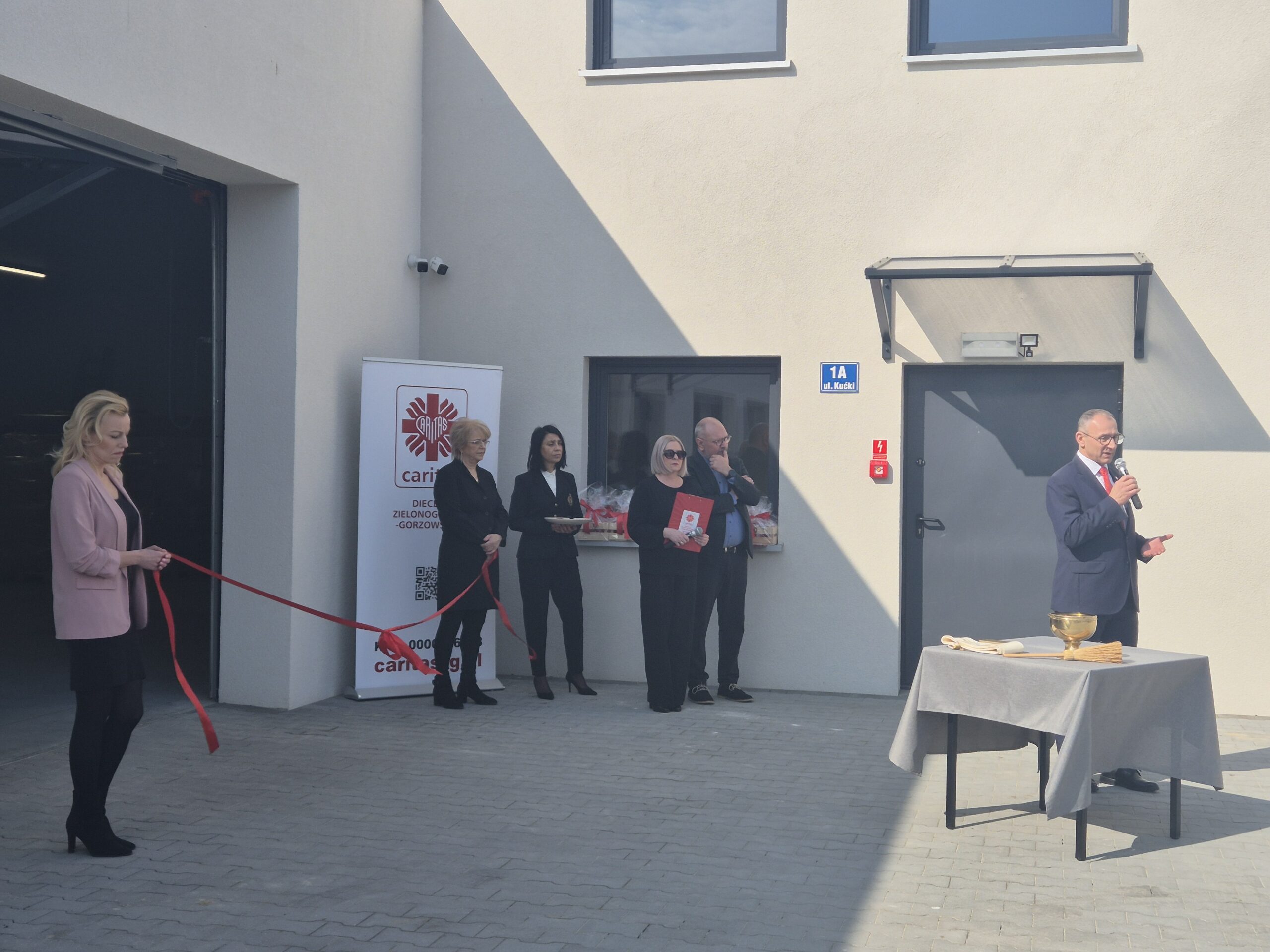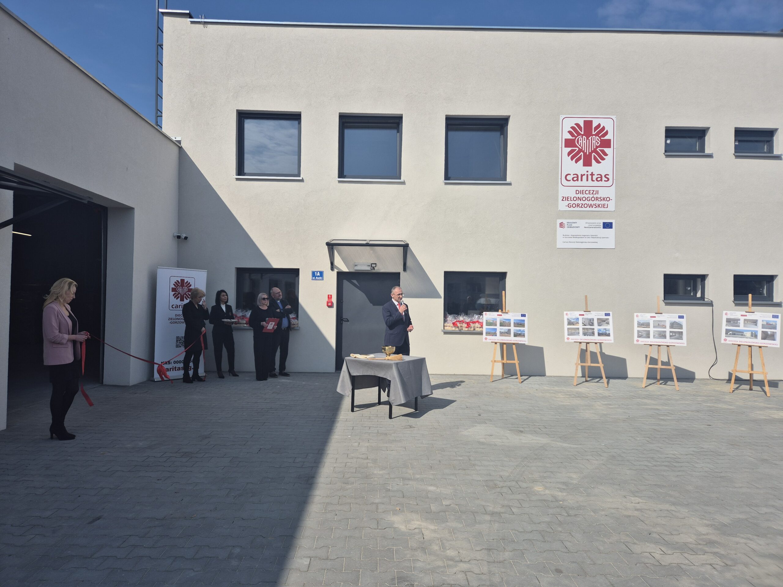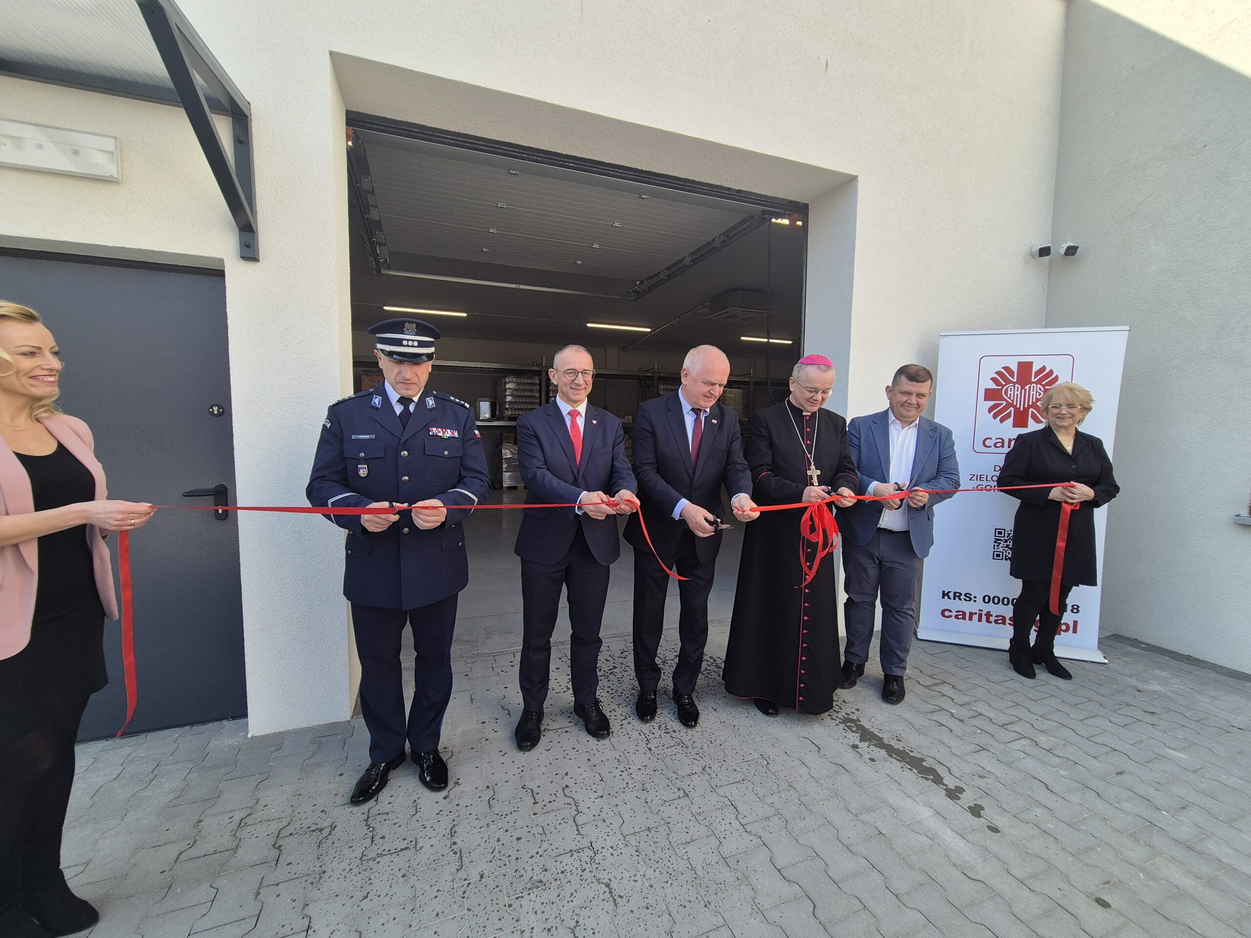 Kulminacyjnym momentem uroczystości było poświęcenie magazynu przez Biskupa Tadeusza Lityńskiego oraz symboliczne przecięcie wstęgi.