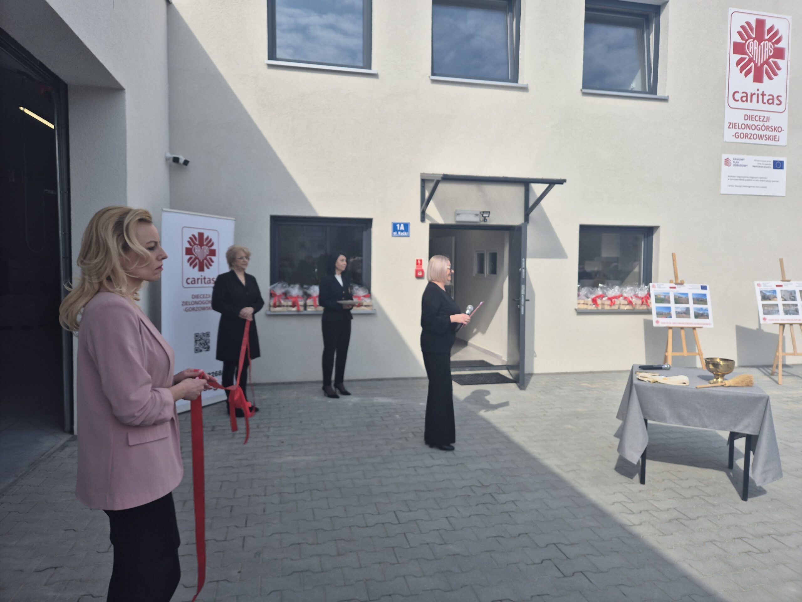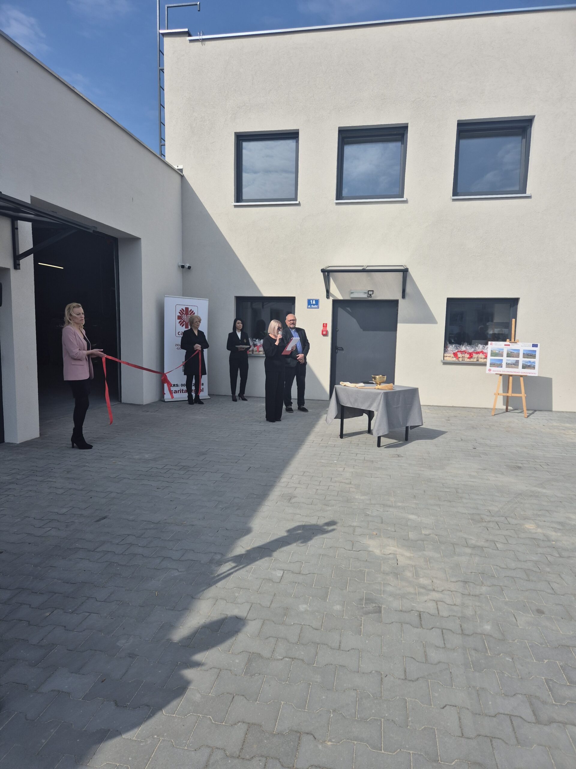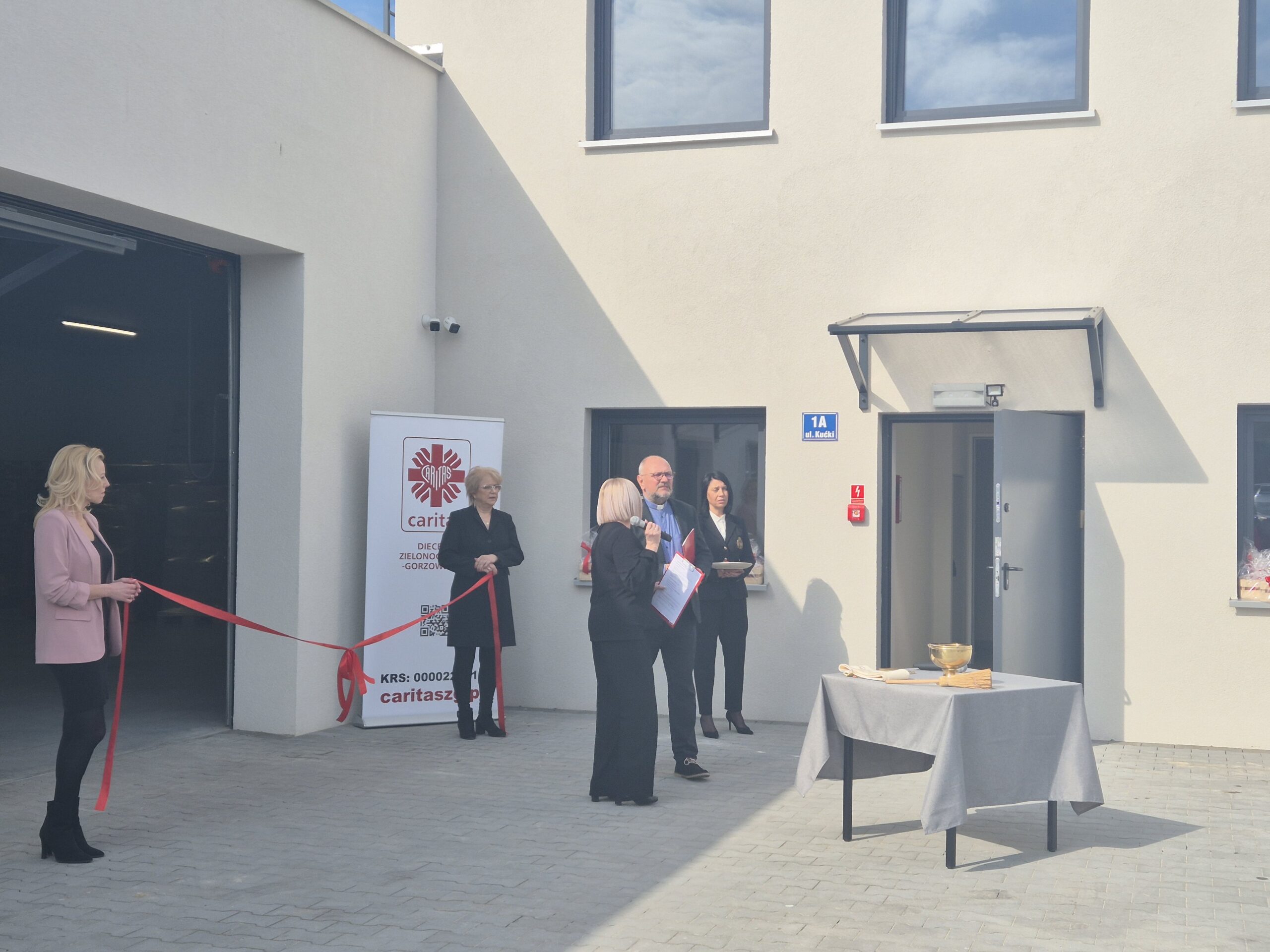 Kulminacyjnym momentem uroczystości było poświęcenie magazynu przez Biskupa Tadeusza Lityńskiego oraz symboliczne przecięcie wstęgi.