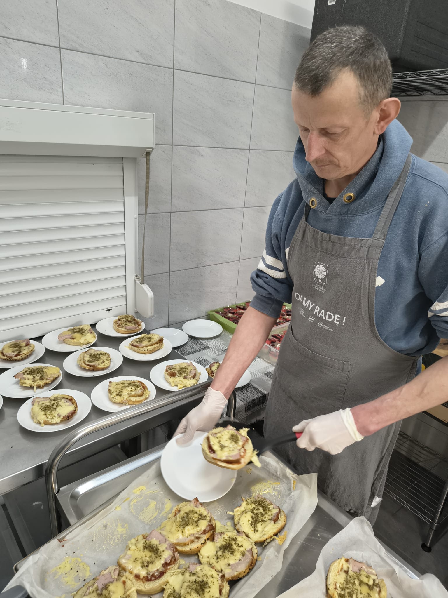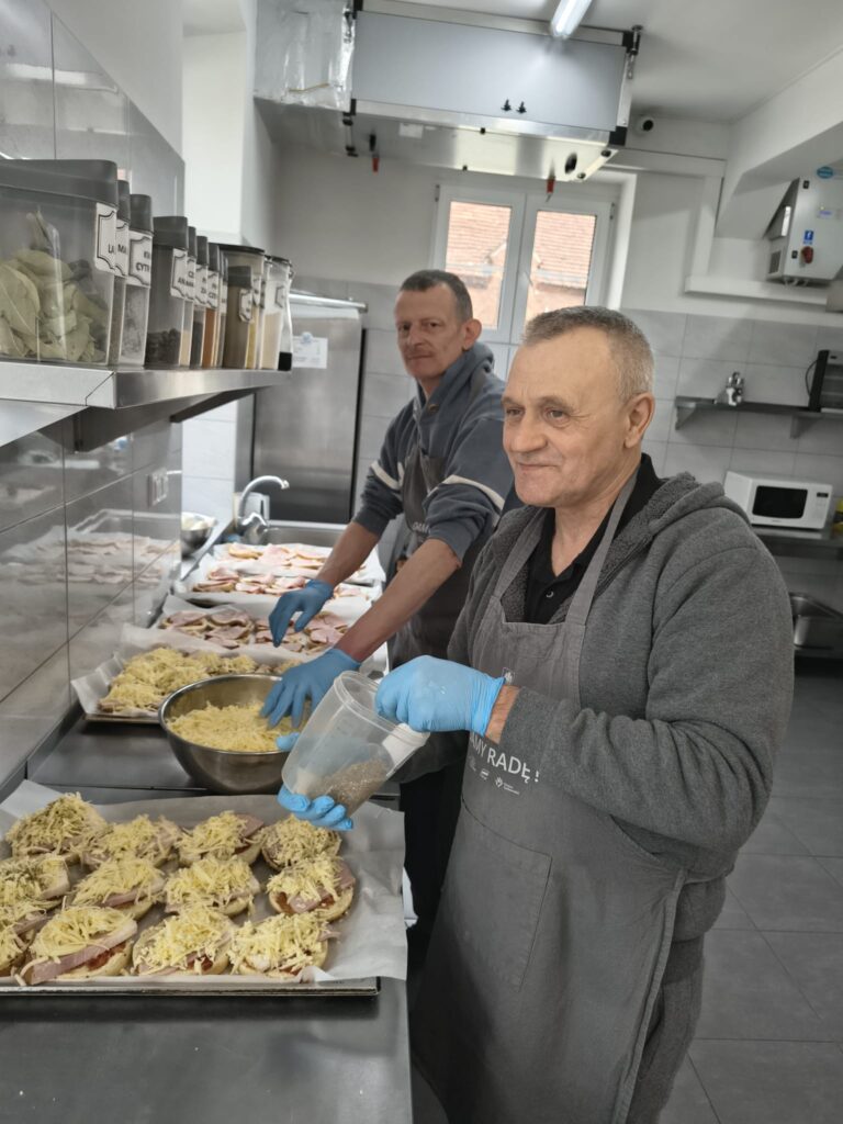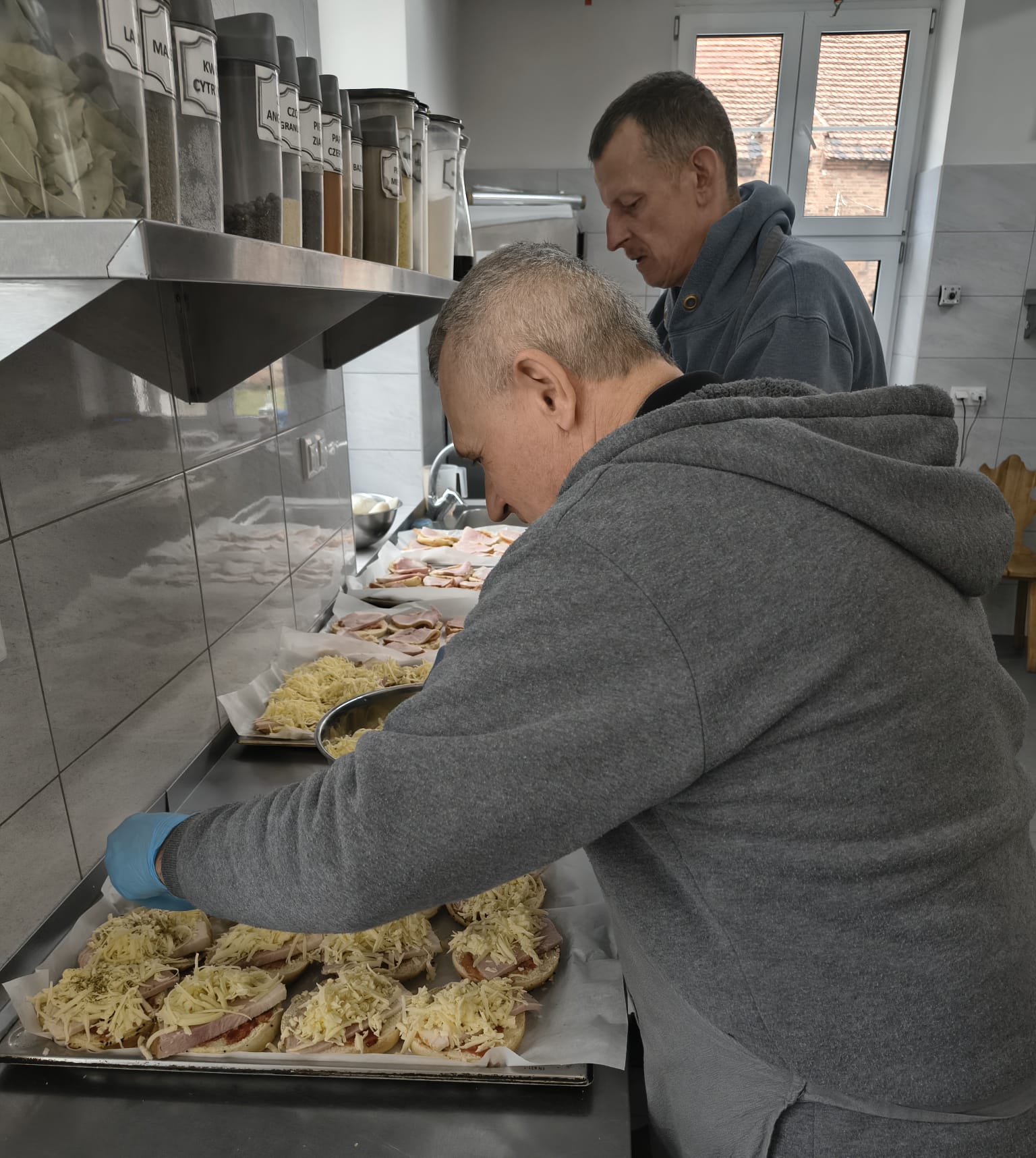 W Żukowicach mieszkańcy aktywnie angażują się w przygotowywanie posiłków oraz prace w kuchni. Udział w tych działaniach pozwala im rozwijać praktyczne umiejętności, zdobywać nowe doświadczenia oraz uczyć się organizacji pracy i współpracy w zespole.