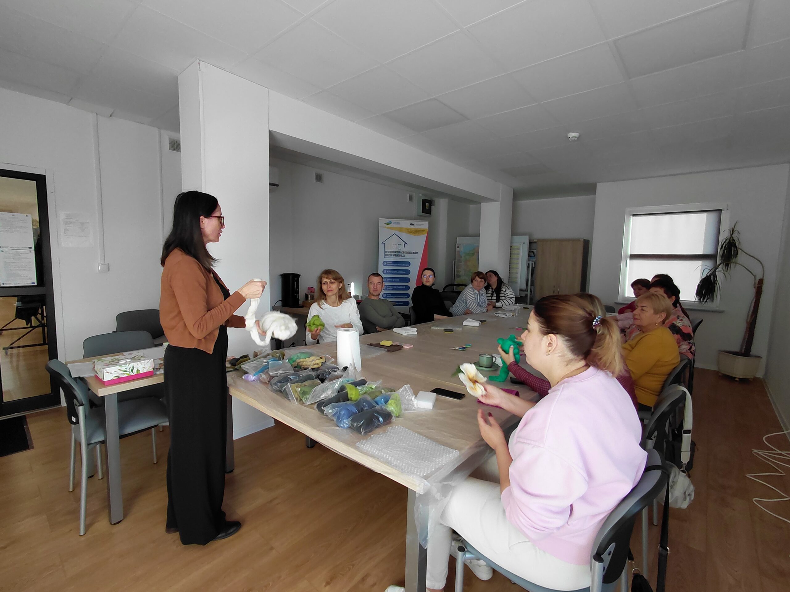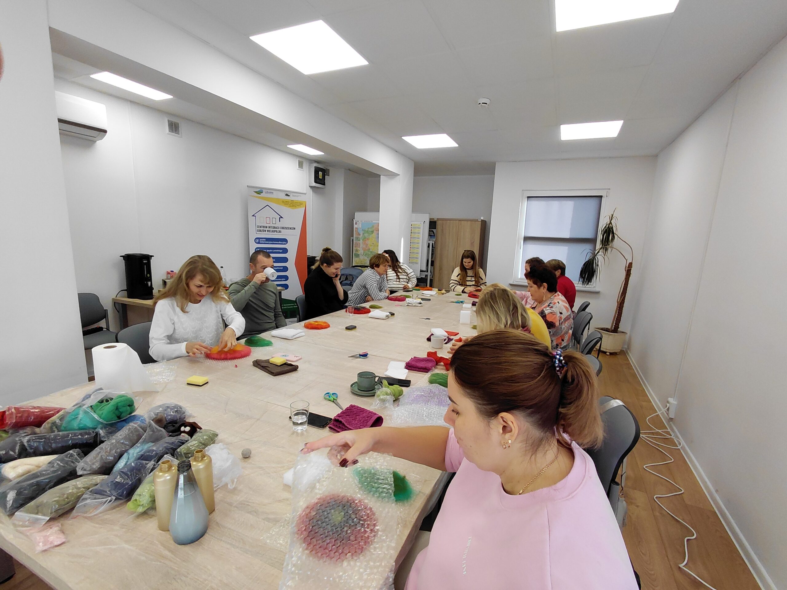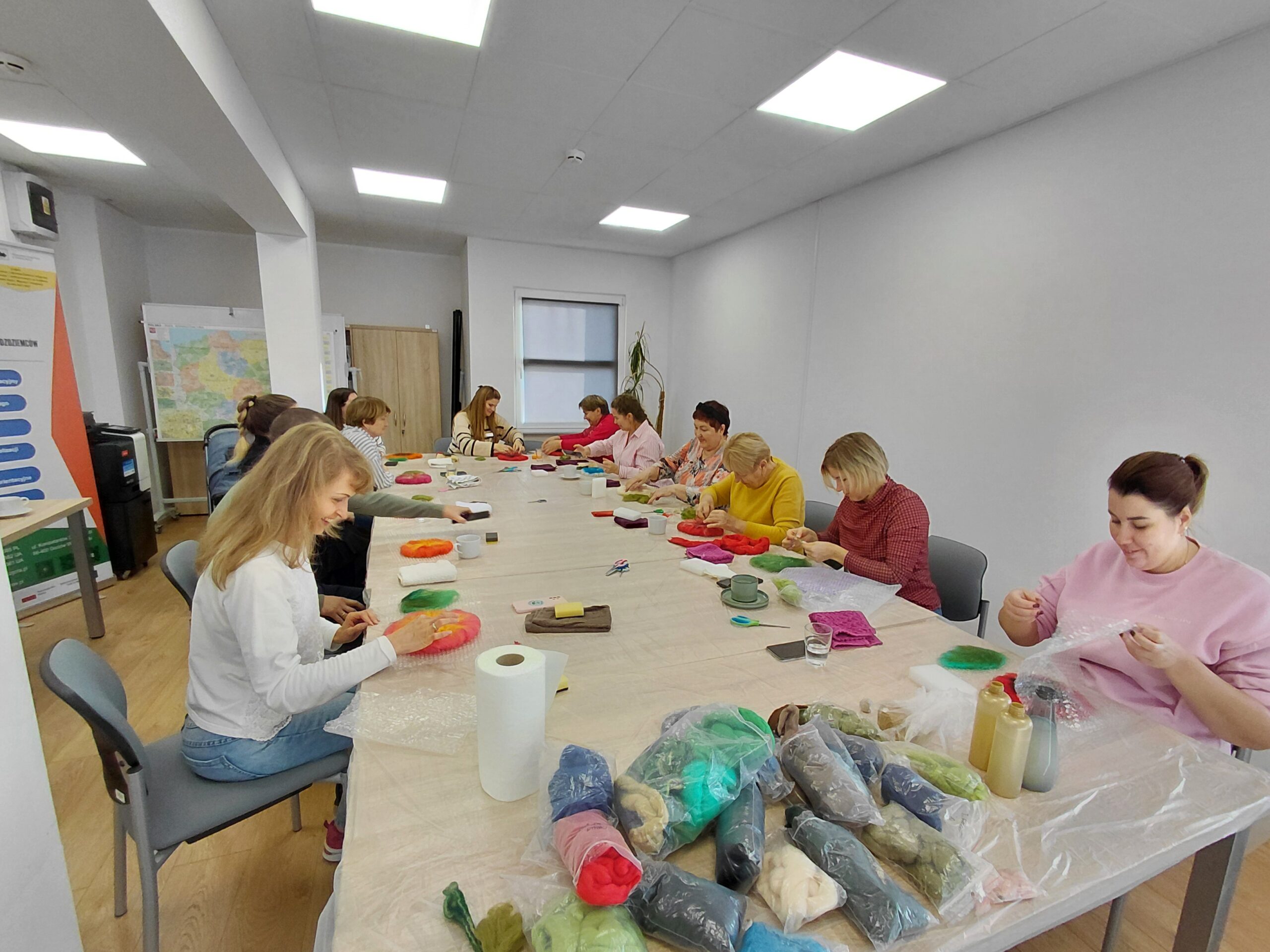Pierwsze spotkanie odbyło się w środę 5 listopada 2025 r. Uczestnicy własnoręcznie tworzyli filcowe kwiaty inspirowane tradycyjnymi polskimi wzorami ludowymi. Wspólne działanie stało się okazją do rozmowy o znaczeniu symboli w tradycji i ich obecności we współczesnym życiu. Atmosfera była twórcza i otwarta – uczestnicy chętnie dzielili się swoimi historiami i doświadczeniem.