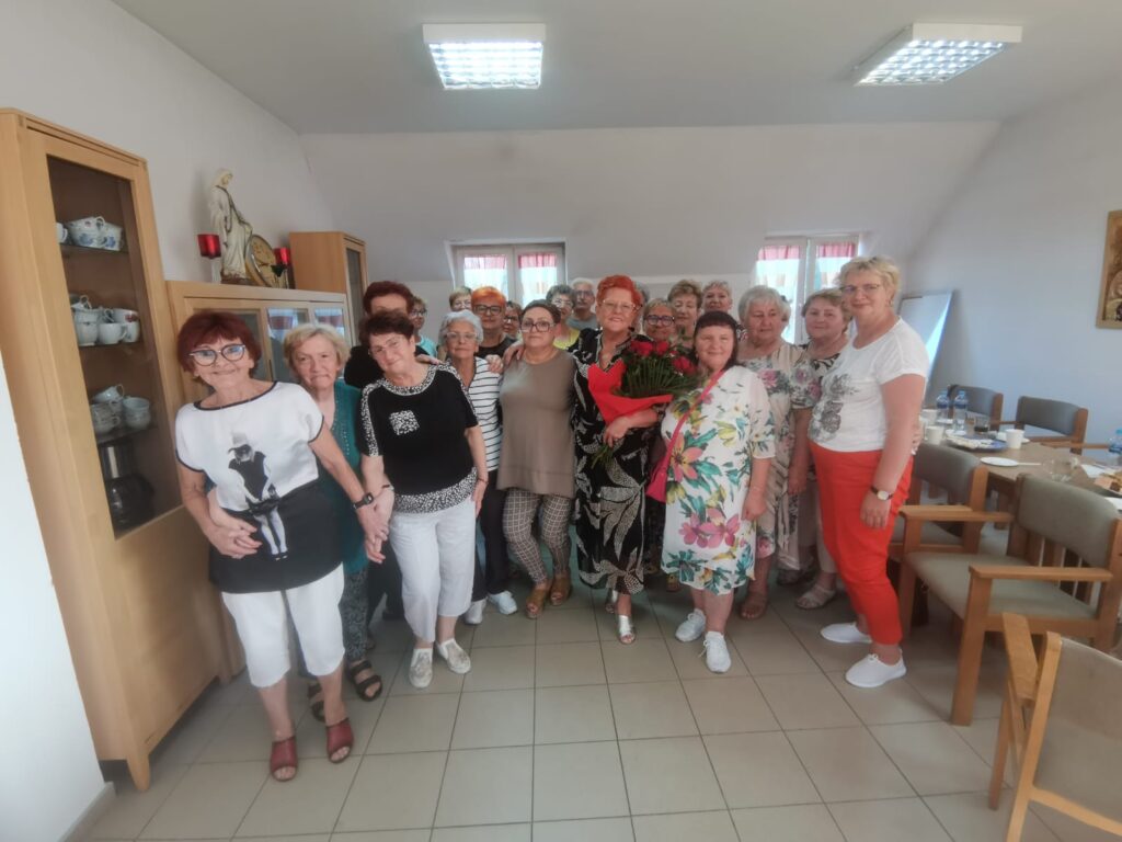 Warsztaty zyskały jeszcze większą doniosłość, ponieważ liderka naszego Klubu Seniora Pani Terenia obchodziła swoje urodziny. Wszyscy złożyliśmy jej serdeczne życzenia, a w imieniu nas wszystkich kolega Bronek wręczył jubilatce wiązankę czerwonych róż. Następnie wszyscy zaśpiewaliśmy jej 100 lat oraz hymn seniora …” Kochajmy się, szanujmy się, spotkajmy się…dopóki jeszcze można i dopóki czas nam sprzyja”…