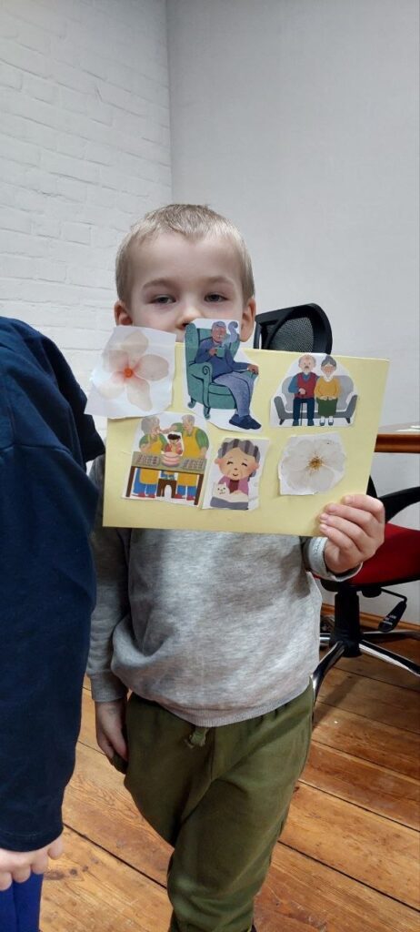 Podczas warsztatów rozmawialiśmy o naszych wspomnieniach związanych z babciami i dziadkami, o tym jak ważną rolę odgrywają w życiu każdego człowieka – zwłaszcza dziecka – oraz o tym jak zawsze świętują ten dzień w swoim gronie rodzinnym. Za pomocą różnych materiałów plastycznych każde dziecko miało możliwość stworzyć wyjątkową kartkę z okazji Dnia Babci i Dziadka.