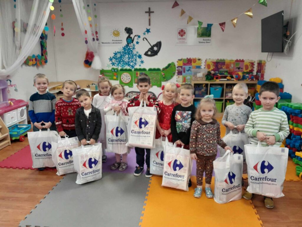 Dzieci otrzymały upominki od Św. Mikołaja, które zafundował Carrefour oraz Klub Żużlowy Falubaz w Zielonej Górze, za co serdecznie darczyńcom dziękujemy 🙂