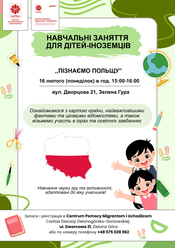 Zapisy i rejestracja odbywają się w Centrum Pomocy Migrantom i Uchodźcom Caritas Diecezji Zielonogórsko-Gorzowskiej: ul. Dworcowa 21, Zielona Góra.